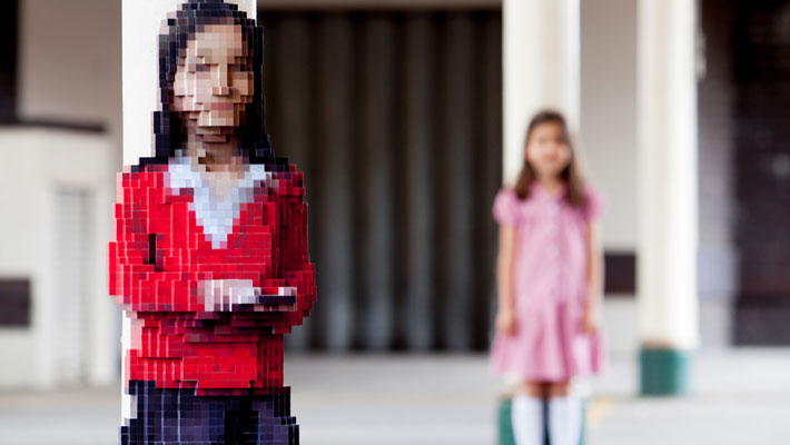 Maya1 Published November 17, 2013 at 710 × 400 in Art ← Previous Next → Maya – Pixelated sculpture of a the artist’s daughter, installed on Bristol Temple Meads Station.